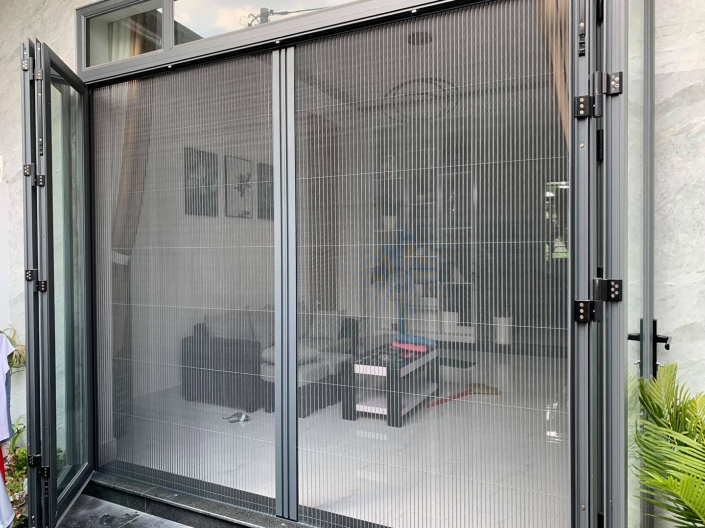Cửa lưới chống muỗi dạng xếp mẫu ghi lắp cửa đi 2 cánh
