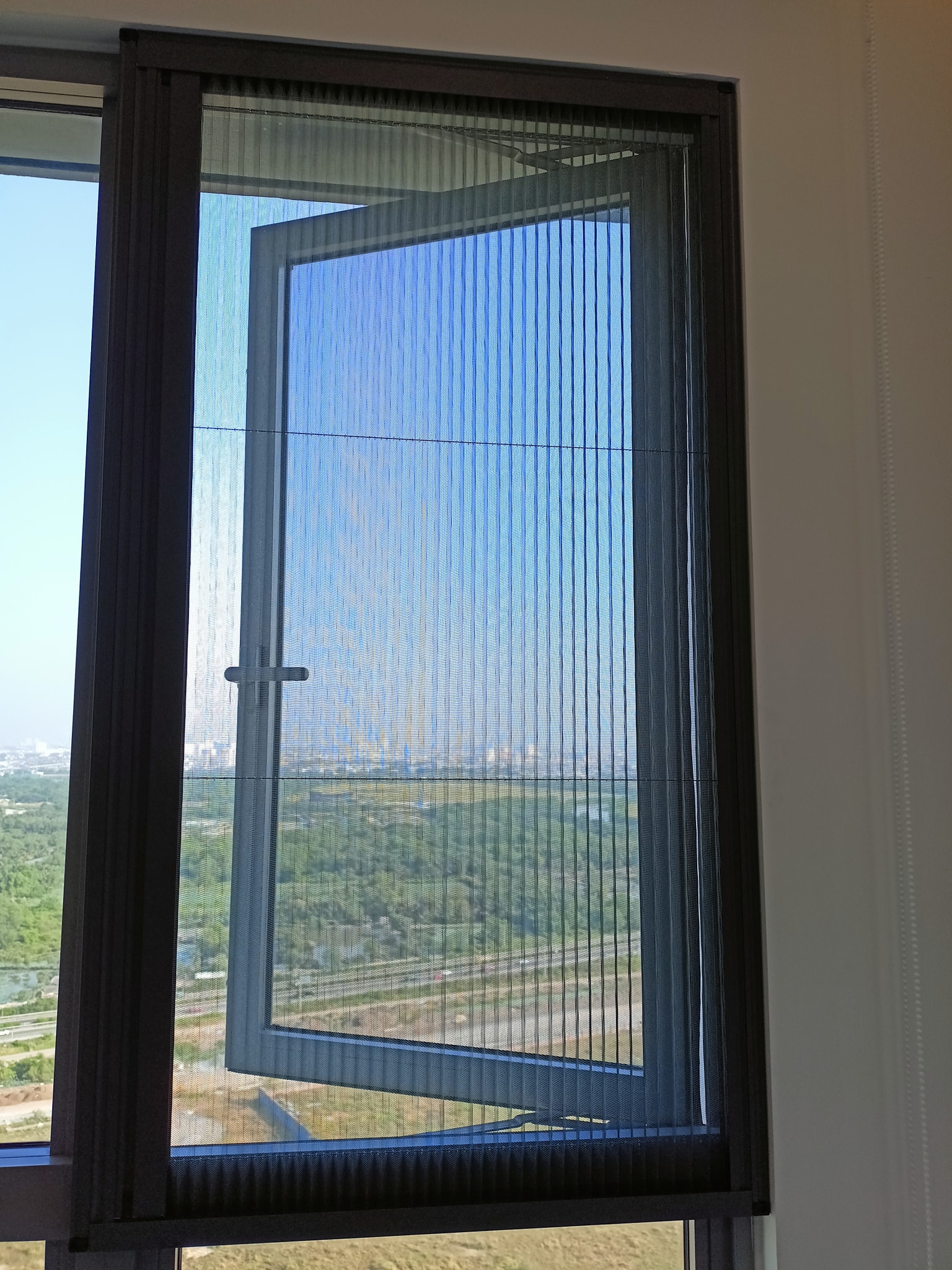 Cửa lưới chống muỗi dạng xếp mầu ghi lắp cửa sổ 1 cánh